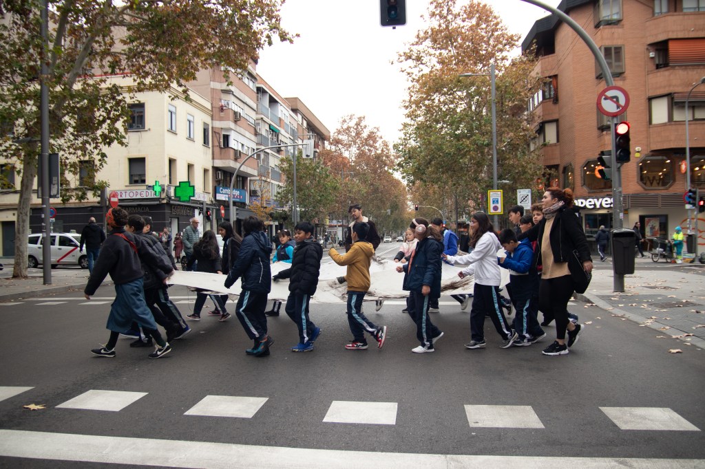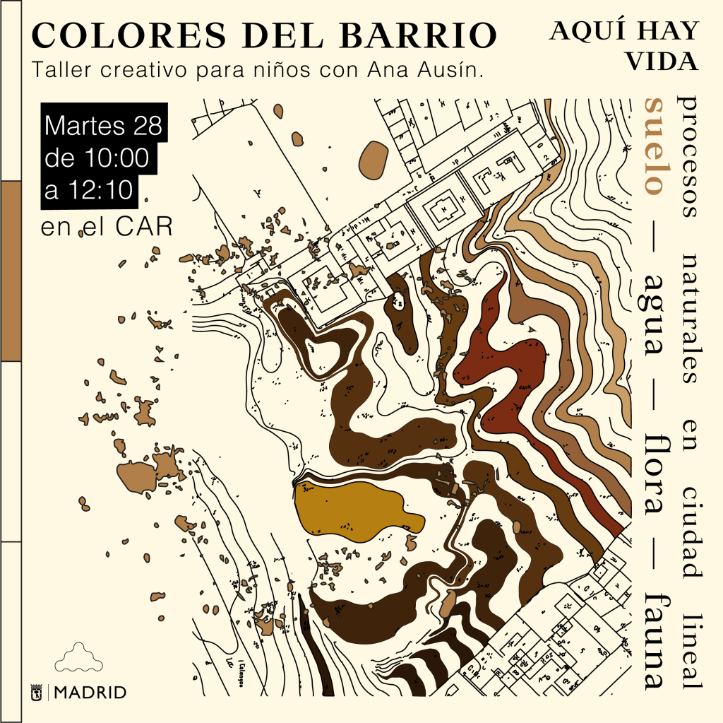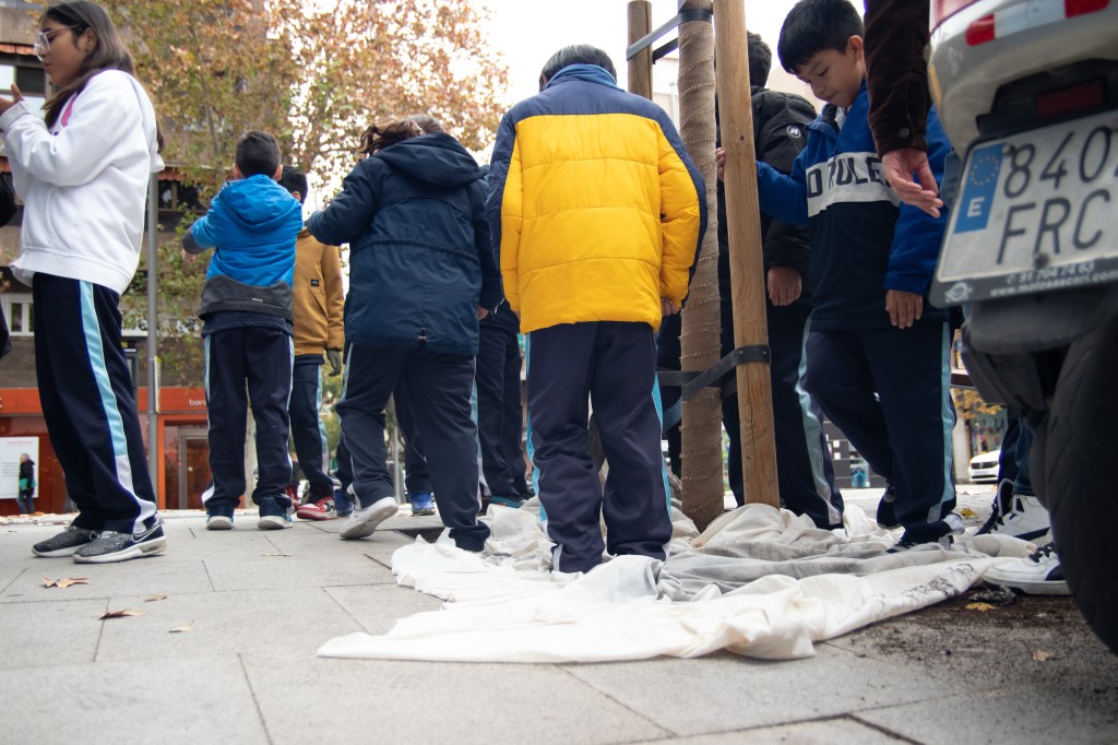 La experiencia de «Colores del Barrio» nos llevó a explorar nuestro entorno en varios rincones del vecindario. En el marco del proyecto «Aquí hay Vida», nos sumergimos en una acción colectiva junto al alumnado del Colegio Cenit, creando una pintura que capturó la esencia de la tierra bajo nuestros pies.