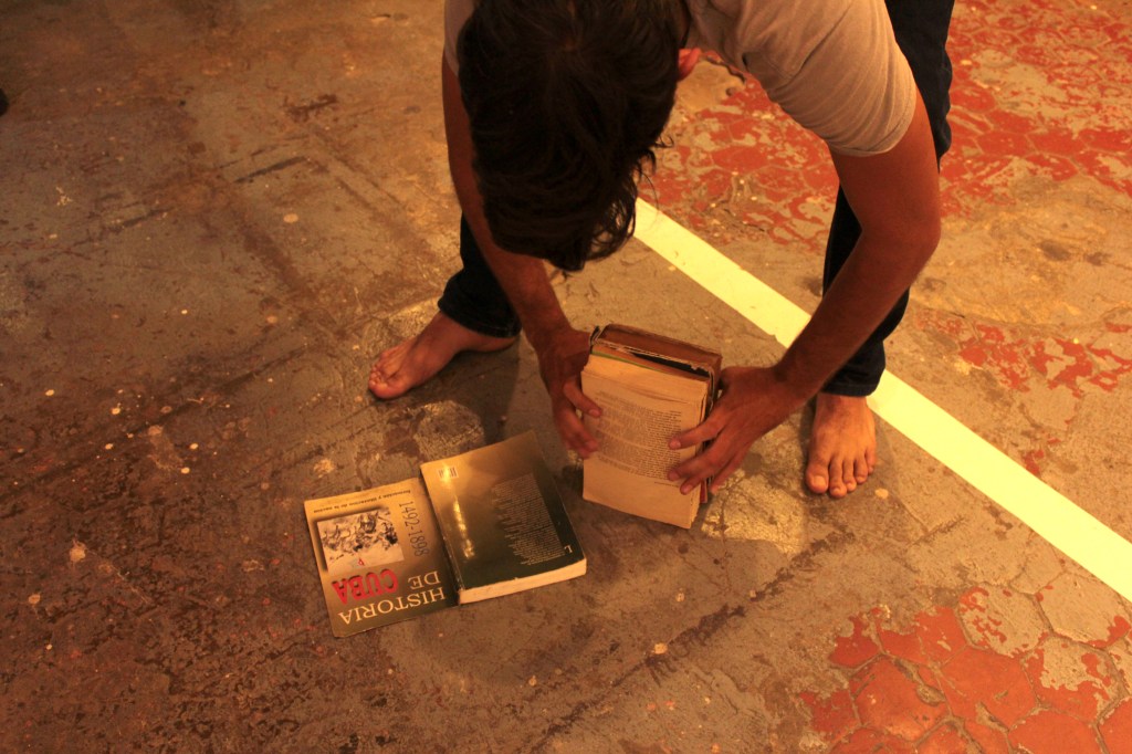 La obra consiste en la documentación de la realización del ejercicio de caminar con libros en la cabeza. En el video, realizado con una toma fija, se muestra al individuo(yo) tratando de mantener en equilibrio una serie de libros con la cabeza mientras camina sobre una línea recta que se sale del encuadre. Los libros que se utilizan para esta acción son libros clásicos y claves dentro del sistema educacional cubano, instaurados como material de estudio luego del triunfo de La Revolución y que además perfilan los lineamientos políticos e ideológicos del poder imperante luego de 1959.